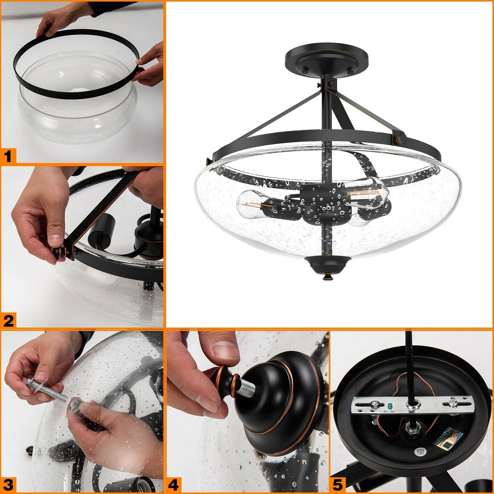 You deserve to brighten up your home with high-quality affordable and luxurious ceiling lights. That's why we strive to provide you with this special and distinctive piece of seeded glass ceiling light fixture. The finely-painted rustic finish frame with glamorous golden trim enhances an elegant shine that complements your room with industrial aesthetics. It is an exquisite light that would be great for an entranceway or main hallway so it can be seen when walking into your home. You can install vintage Edison bulbs or any other glamorous bulbs to create a look that is truly your own. The package includes all mounting hardware for quick and easy installation. If you are looking for a ceiling light like this do not hesitate to place an order! High transparency seeded glass lampshade adds romantic feeling A modern and vintage design can quickly attract the attention of other guests Glossy metal rings and locking kit for added safety Compatible with all E26 bulbs up to 60W (Bulbs not include) It has stable structure and is not easy to shake and fall A beautiful light source in your living space UL certified and approved for indoor use only Easy to install without unnecessary troubles